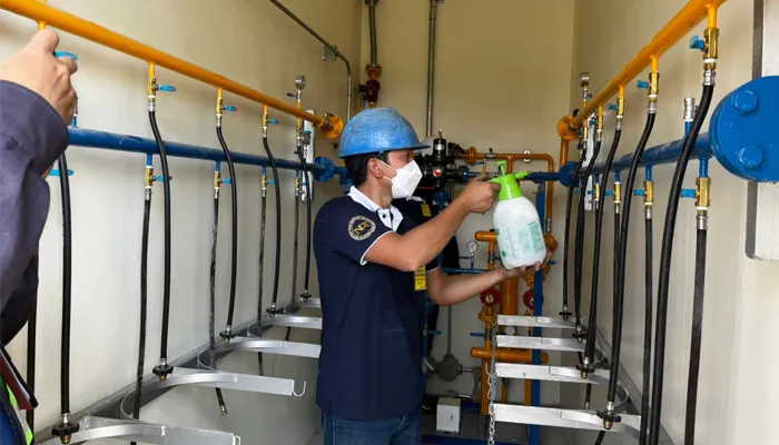งานตรวจประจำปี สถานที่ใช้ก๊าซปิโตเลียมเหลวขนาด 48 กิโลกรัม ตามข้อกำหนดของกรมธุรกิจพลังงาน